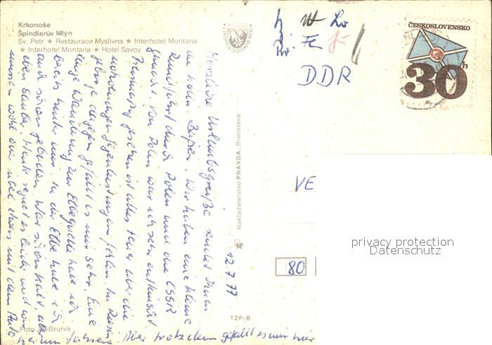 old postcard Spindleruv Mlyn Spindlermuehle Restaurace Myslivna Interhotel Montana Hotel Savoy postalisch gelaufen Erhaltung siehe scans