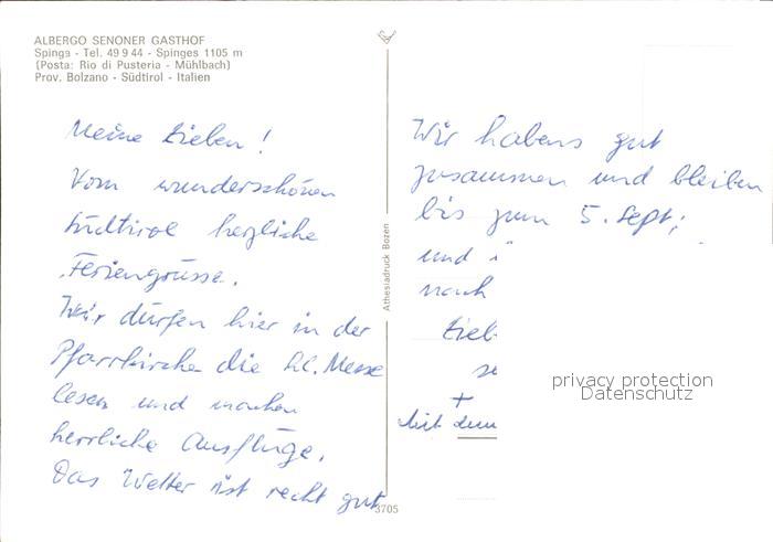 Spinges Albergo Senoner Gasthof postalisch nicht gelaufen Erhaltung siehe scans