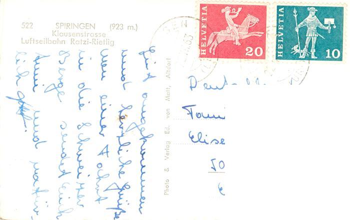 13949756 alte Postkarte Spiringen UR Klausenstrasse postalisch gelaufen Fliegeraufnahme Erhaltung siehe scans [FriedD77] KatCode: 11470220685222
