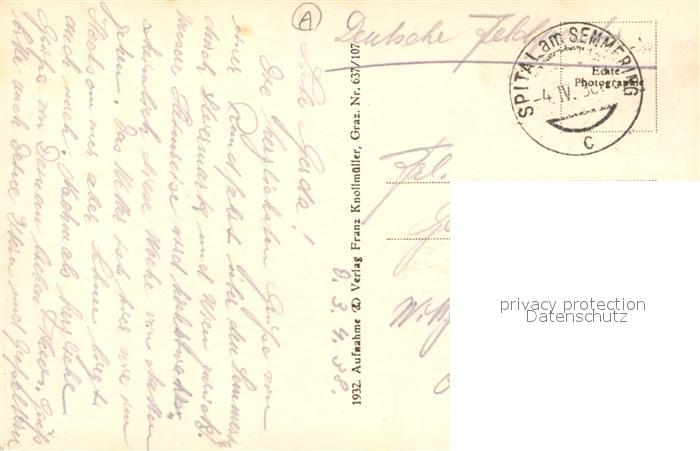 43173649 alte Postkarte Spital Semmering Steiermark Panorama mit Stuhleck postalisch gelaufen Feldpost Erhaltung siehe scans [WerneD78] KatCode: 11390223061313