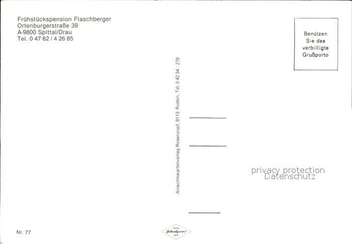 72419123 Spittal Drau Fruehstueckspension Flaschberger postalisch nicht gelaufen Erhaltung siehe scans KatCode: 11390212020635