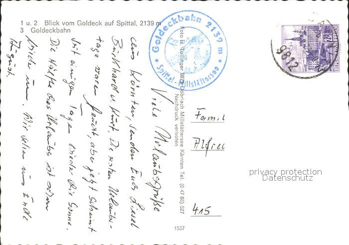 72289285 alte Postkarte Spittal Drau Goldeck Spittal Goldeckbahn postalisch gelaufen Erhaltung siehe scans KatCode: 11390212020635