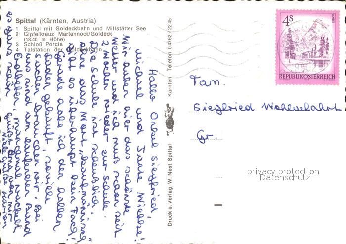 72288360 alte Postkarte Spittal Drau Goldeckbahn Millstaetter See Schloss Porcia postalisch gelaufen Erhaltung siehe scans KatCode: 11390212020635