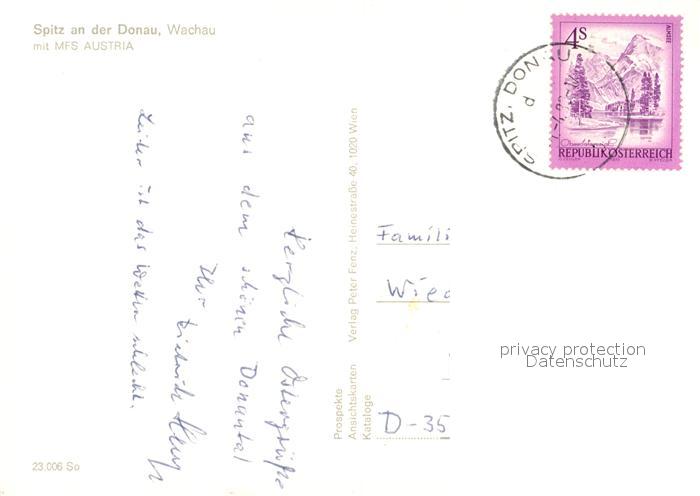 73361992 alte Postkarte Spitz Donau Fahrgastschiff MFS Austria postalisch gelaufen Erhaltung siehe scans [FriedD77] KatCode: 11390124031344