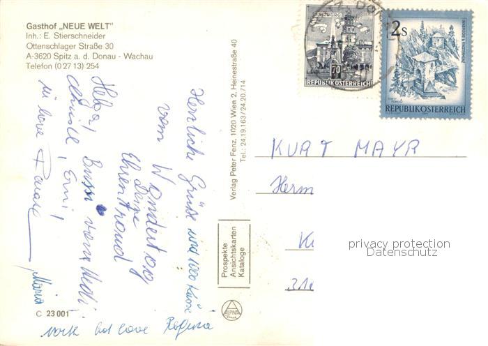73779262 alte Postkarte Spitz Donau Gasthof Neue Welt postalisch gelaufen Erhaltung siehe scans [FriedD77] KatCode: 11390124031344