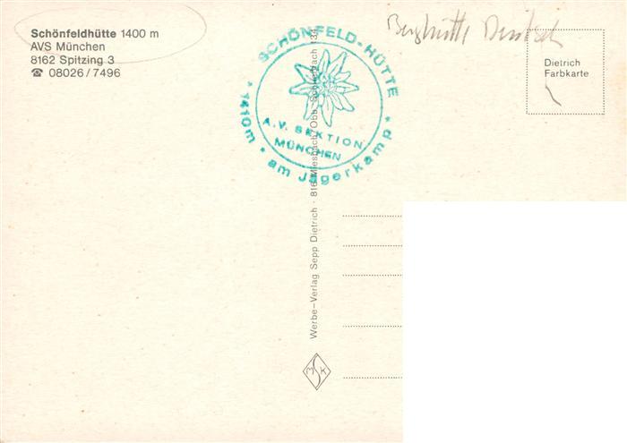 73932574 Spitzing Schliersee Schoenfeldhuette Berghuette Alpen postalisch nicht gelaufen Erhaltung siehe scans [FriedD77] Frie Katcode 11110009182131