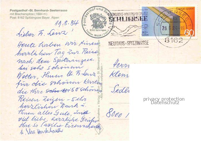74096470 alte Postkarte Spitzingsee 1130m Schliersee Bayern Postgasthof St Bernhard Seeterrasse postalisch gelaufen Erhaltung siehe scans [IrynaD87] KatCode: 11110009182131