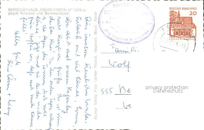 71977223 alte Postkarte Spitzingsee Berggasthaus Obere Firstalm gegen Rotwand und Sonnwendjoch Mangfallgebirge postalisch gelaufen KatCode: 11110009182131