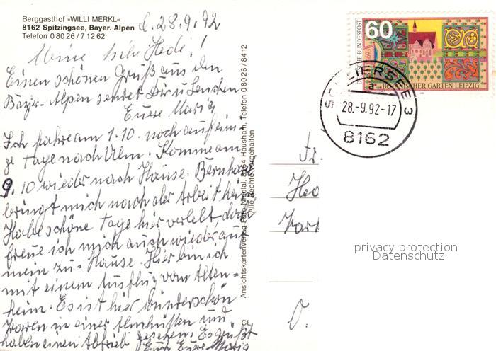 73513416 alte Postkarte Spitzingsee Berggasthof Willi Merkl postalisch gelaufen Erhaltung siehe scans [KathaD81] KatCode: 11110009182131