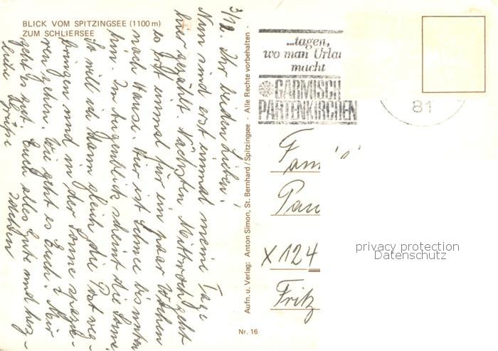73755534 alte Postkarte Spitzingsee Blick vom Spitzingsee zum Schliersee postalisch gelaufen Erhaltung siehe scans [FriedD77] KatCode: 11110009182131