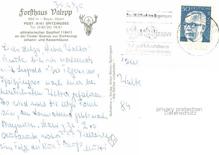 72900335 alte Postkarte Spitzingsee Forsthaus Valepp postalisch gelaufen Erhaltung siehe scans [FriedD77] KatCode: 11110009182131