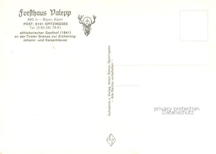 73653007 Spitzingsee Forsthaus Valepp Details postalisch nicht gelaufen Erhaltung siehe scans [WerneD78] KatCode: 11110009182131