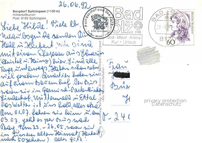 72798813 alte Postkarte Spitzingsee Gasthof Bergdorf Hoehenluftkurort See Alpen postalisch gelaufen Erhaltung siehe scans [FriedD77] KatCode: 11110009182131