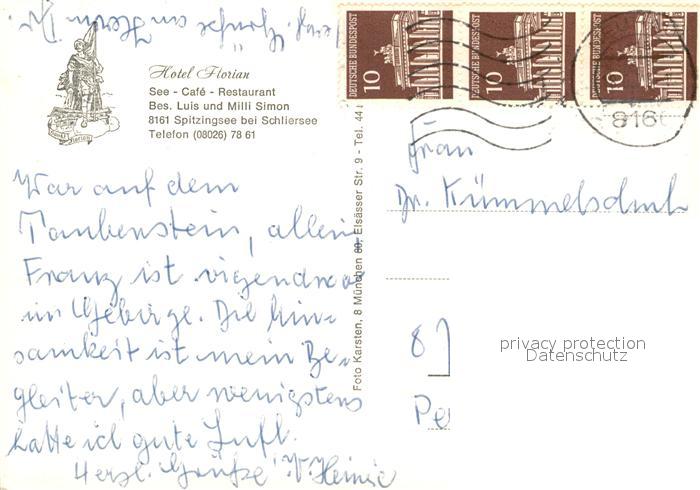 73054741 alte Postkarte Spitzingsee Hotel Florian Cafe Restaurant am Schliersee postalisch gelaufen Erhaltung siehe scans [WerneD78] KatCode: 11110009182131