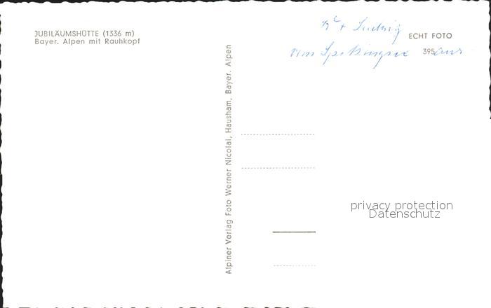72202505 Spitzingsee Jubilaeumshuette mit Rauhkopf postalisch nicht gelaufen Erhaltung siehe scans KatCode: 11110009182131