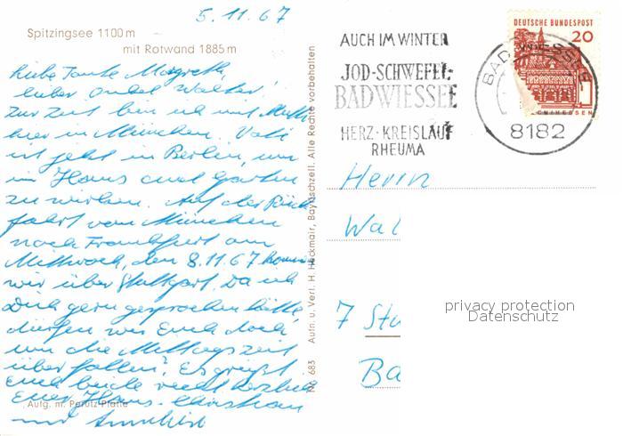 72746245 alte Postkarte Spitzingsee mit Rotwand postalisch gelaufen Erhaltung siehe scans [LiesaD40] KatCode: 11110009182131