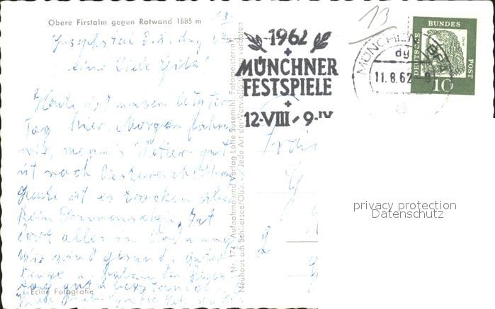 72216864 alte Postkarte Spitzingsee Obere Firstalm mit Rotwand postalisch gelaufen Erhaltung siehe scans KatCode: 11110009182131