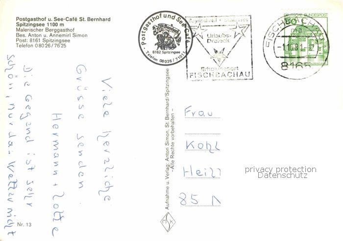 72777400 alte Postkarte Spitzingsee Postgasthof See Cafe Bernhard postalisch gelaufen Erhaltung siehe scans [KathaD81] KatCode: 11110009182131