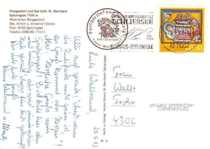 73543581 alte Postkarte Spitzingsee Postgasthof St Bernhard postalisch gelaufen Erhaltung siehe scans [WerneD78] KatCode: 11110009182131