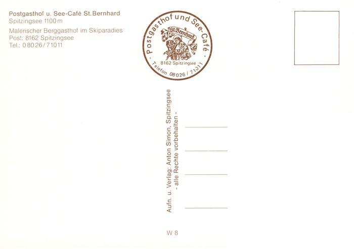 73879024 Spitzingsee Schliersee Postgasthof und See Cafe St Bernhard postalisch nicht gelaufen Erhaltung siehe scans [WerneD78] KatCode: 11110009182131