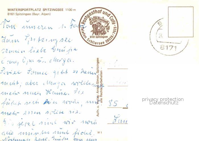 72915088 alte Postkarte Spitzingsee Skigebiet Postgasthof und Cafe St. Bernhard postalisch gelaufen Erhaltung siehe scans [LiesaD40] KatCode: 11110009182131