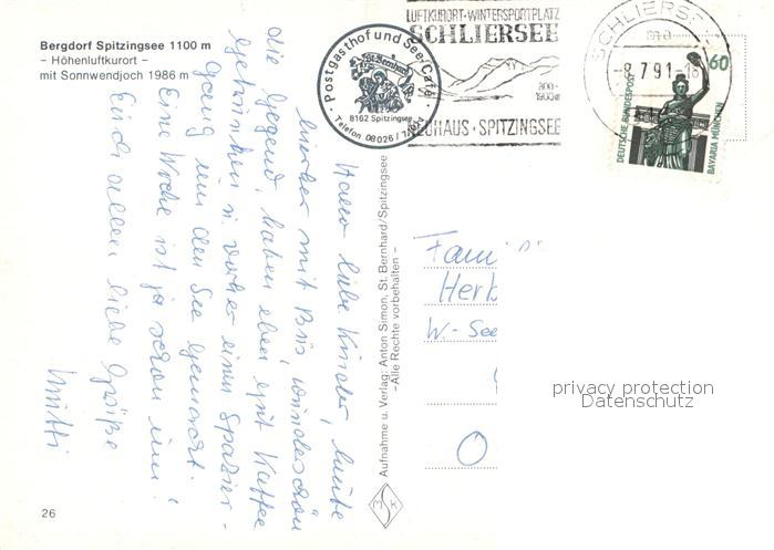 73598832 alte Postkarte Spitzingsee Sonnwendjoch postalisch gelaufen Erhaltung siehe scans [PaolaD17] KatCode: 11110009182131