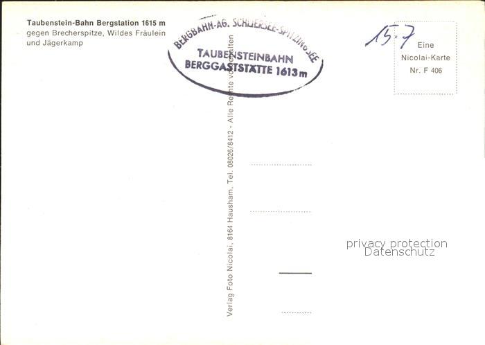 72074409 Spitzingsee Taubenstein Bahn Bergstation Brecherspitze Wildes Fraeulein Jaegerkamp postalisch nicht gelaufen Erhaltung siehe scans KatCode: 11110009182131