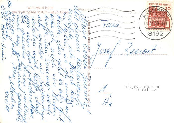 72991580 alte Postkarte Spitzingsee Willi Merkl Heim postalisch gelaufen Erhaltung siehe scans [LiesaD40] KatCode: 11110009182131