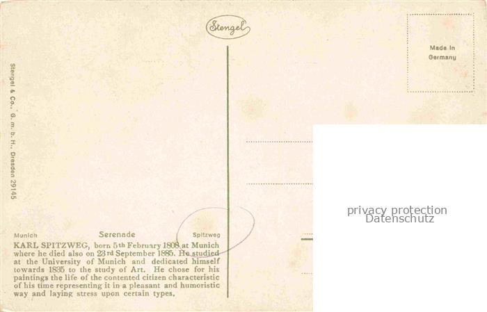 74027777 Spitzweg Carl Kuenstlerkarte Serenade Stengel Nr. 29145 postalisch nicht gelaufen Erhaltung siehe scans [IrynaD87] KatCode: 22240000005100