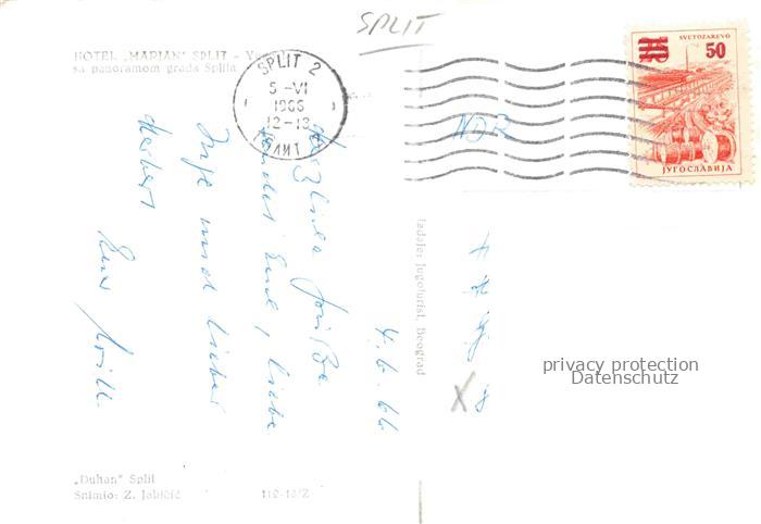 34143548 old postcard SPLIT Spalato Croatia Panorama Hotel Marian Hafen postalisch gelaufen Fliegeraufnahme Erhaltung siehe scans [FriedD77] KatCode: 11260