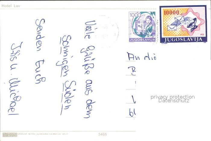 old postcard Split Spalato Hotel Lav Fliegeraufnahme postalisch gelaufen Erhaltung siehe scans