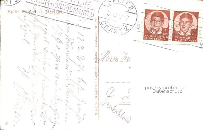 old postcard Split Spalato Pogled Marjana postalisch gelaufen Erhaltung siehe scans