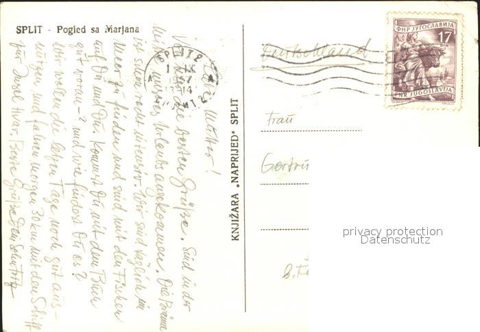 old postcard Split Spalato Pogled Marjana postalisch gelaufen Erhaltung siehe scans