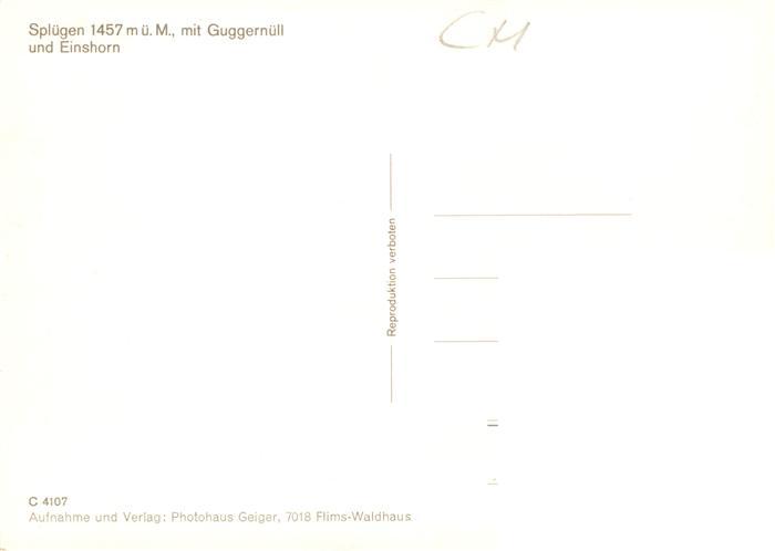 13914642 Spluegen 2113m GR mit Guggernuell und Einshorn postalisch nicht gelaufen Erhaltung siehe scans [WerneD78] KatCode: 11470360065190
