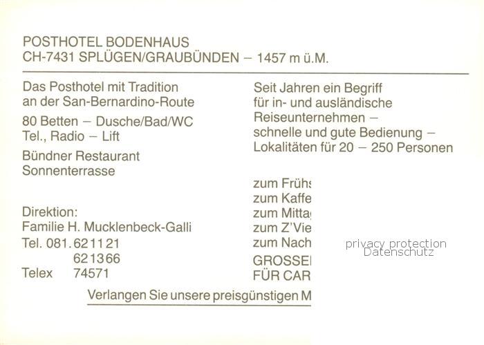 13871099 Spluegen 2113m GR Posthotel Bodenhaus Gastraeume postalisch nicht gelaufen Werbekarte (keine Postkarte) Erhaltung siehe scans [WerneD78] KatCode: 11470360065190