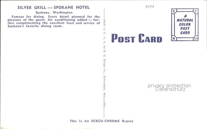 72322914 Spokane Washington Silver Grill Spokane Hotel postalisch nicht gelaufen Erhaltung siehe scans KatCode: 14140500000000
