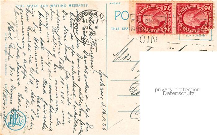 73820281 old postcard Spokane Washington USA Aid a glimpse of the City Through the pines postalisch gelaufen Erhaltung siehe scans [FriedD77] KatCode: 14140500000000