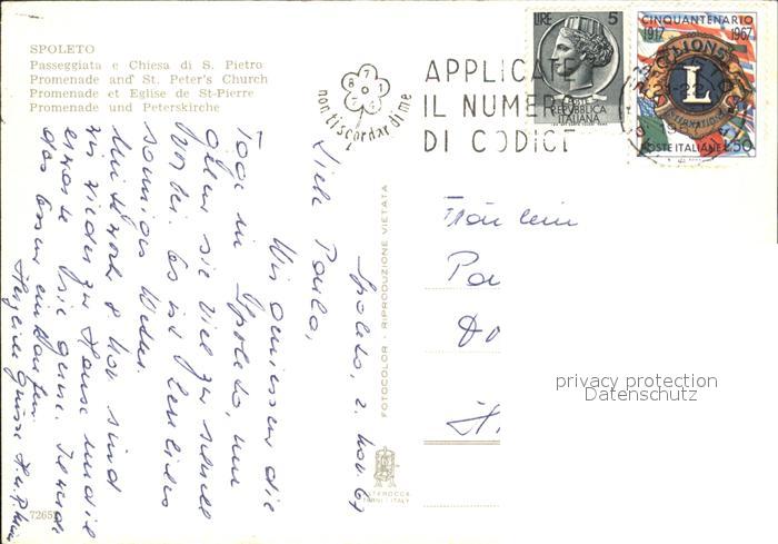 old postcard Spoleto Promenade Peterskirche postalisch gelaufen Erhaltung siehe scans