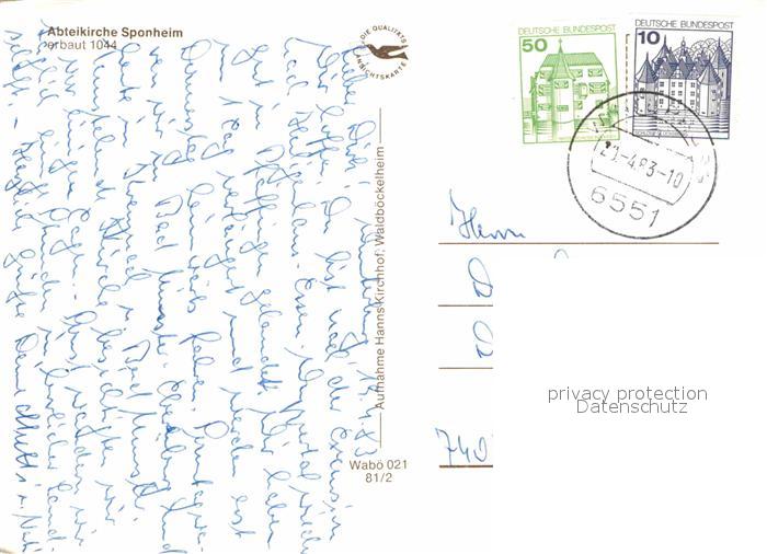 72791186 alte Postkarte Sponheim Abteikirche postalisch gelaufen Erhaltung siehe scans [NatalD47] KatCode: 11110007133101