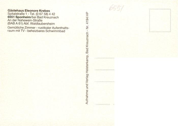 73896934 Sponheim Gaestehaus Eleonore Krebes Gastraeume Pool Zimmer postalisch nicht gelaufen Erhaltung siehe scans [FriedD77] KatCode: 11110007133101