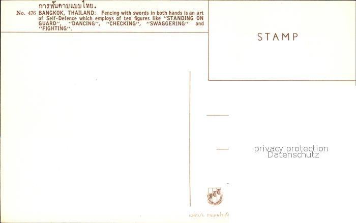 Sport Bangkok Thailand Fencing with Swords postalisch nicht gelaufen Erhaltung siehe scans [PaolaD17]