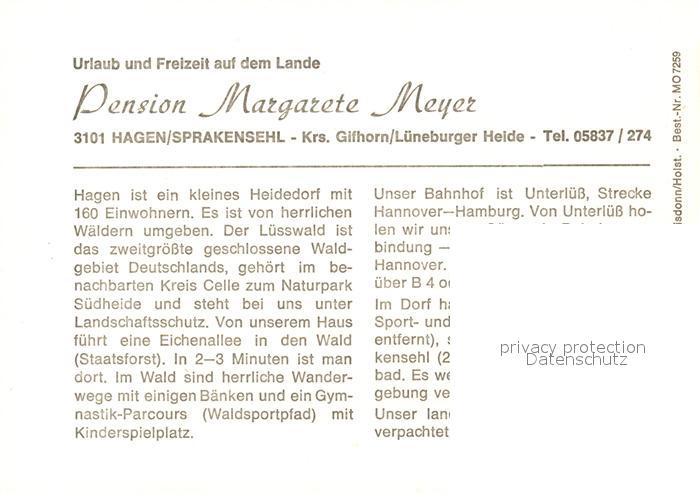 73323243 Sprakensehl Pension Margarete Meyer postalisch nicht gelaufen Werbekarte (keine Postkarte) Erhaltung siehe scans [FriedD77] KatCode: 11110003151028