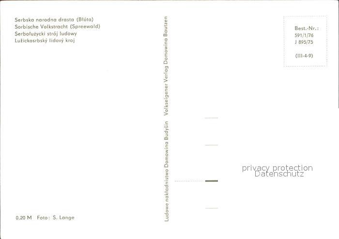 72332130 Spreewald Sorbische Volkstracht postalisch nicht gelaufen Erhaltung siehe scans KatCode: 11110012066196