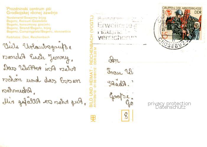 73830440 alte Postkarte Spremberg-Neusalza Nordstrand Bagenz Konsumgaststaette Strand Campingplatz postalisch gelaufen Erhaltung siehe scans [WerneD78] KatCode: 11110014286270
