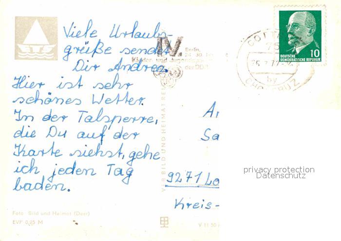 72727443 alte Postkarte Spremberg Niederlausitz Erholungszentrum Talsperre postalisch gelaufen Erhaltung siehe scans [FriedD77] KatCode: 11110012071372