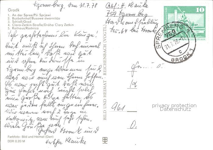 72424033 alte Postkarte Spremberg Niederlausitz Grodk Spree Schloss Rathaus Clara-Zetkin-Strasse postalisch gelaufen Erhaltung siehe scans KatCode: 11110012071372