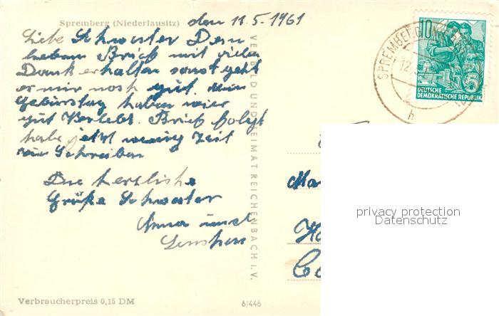 73560602 alte Postkarte Spremberg Niederlausitz Marktplatz Georgenbergturm Lange Strasse Rat des Kreises Schloss postalisch gelaufen Erhaltung siehe scans [KathaD81] KatCode: 11110012071372