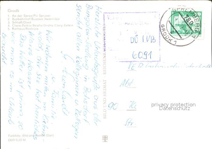 72382588 alte Postkarte Spremberg Niederlausitz Spree Busbahnhof Schloss Clara-Zetkin-Strasse postalisch gelaufen Erhaltung siehe scans KatCode: 11110012071372