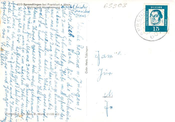 73869346 alte Postkarte Sprendlingen Dreieich Wohnstadt Hirschsprung postalisch gelaufen Fliegeraufnahme Erhaltung siehe scans [FriedD77] KatCode: 11110006438002