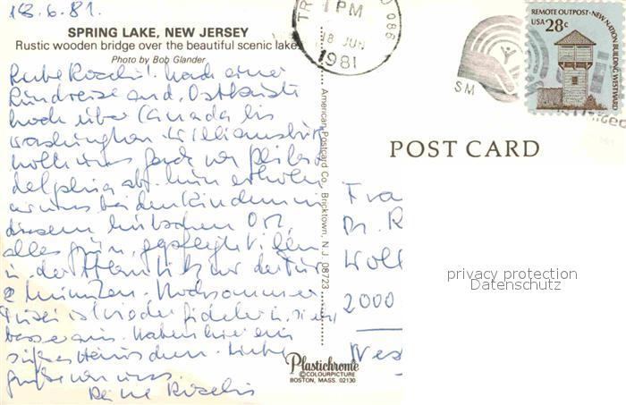 72710579 old postcard Spring Lake New Jersey Rustic wooden bridge over the beautiful scenic lake postalisch gelaufen Erhaltung siehe scans [LiesaD40] KatCode: 14140320000000